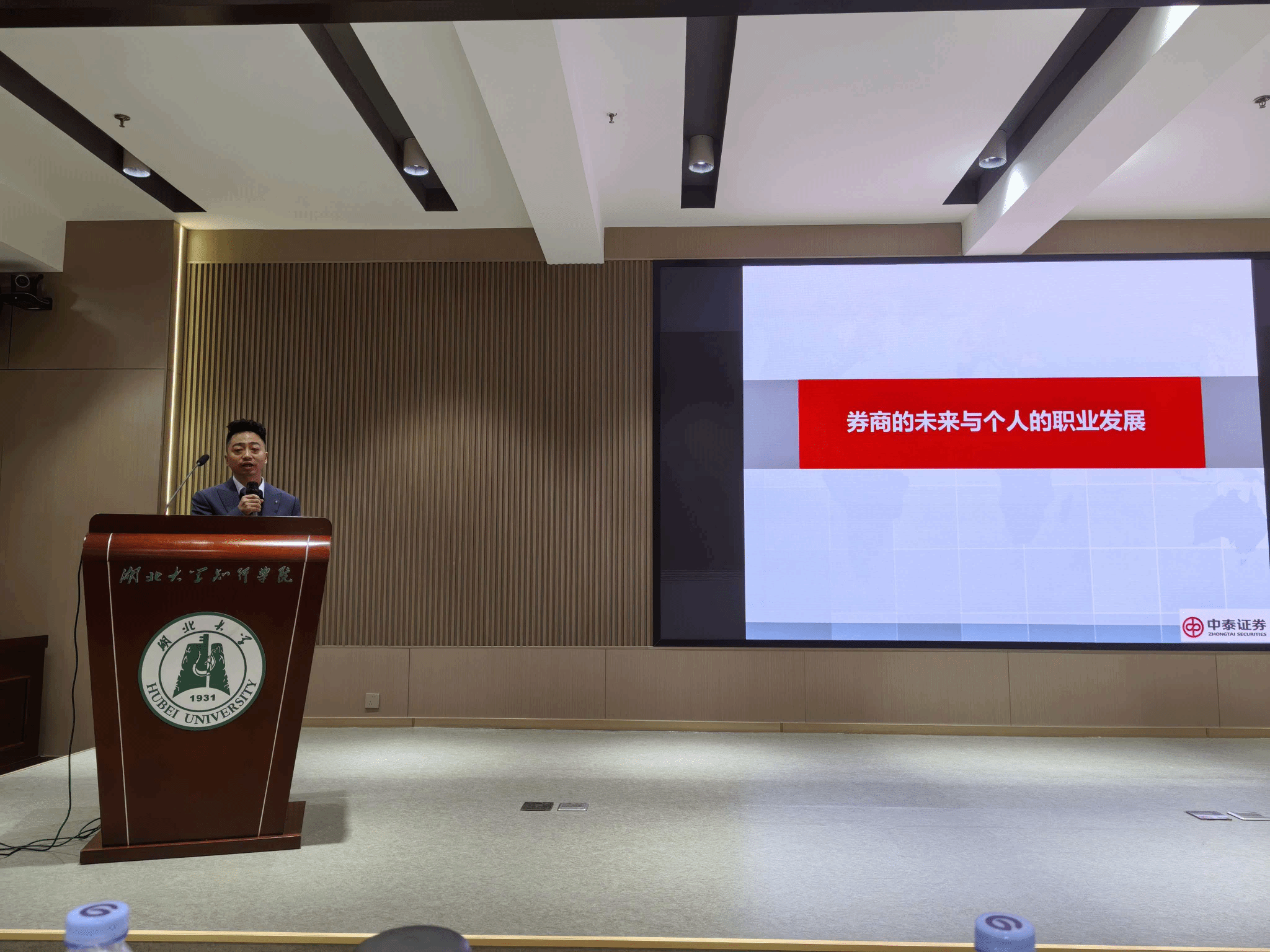 李总监先为同学们介绍了券商的经营业绩数据、业务结构及发展趋势,帮助学生们近距离了解了券商行业的发展前景及岗位需求。然后,针对券商行业人才岗位能力需求,提出了“人才”所应具备的核心品质,鼓励同学们做一个懂感恩、诚信、谦逊、坚韧、有担当、豁达的人。在最后的互动环节,金融学子们针对券商公司实习、岗位应具备的专业能力等热情提问,现场气氛热烈。