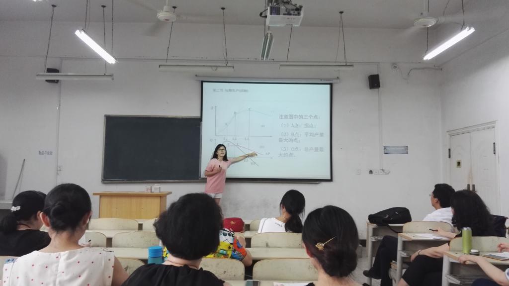 本网讯 5月31日下午,我系在4号教学楼开展青年教师教学研讨活动。在4-103教室,陈子清副教授和陈文锦副教授带领青年教师进行教学研讨活动。本次活动由国贸教研室马欢欢老师和金融教研室张娥老师一共给大家讲授示范课。
