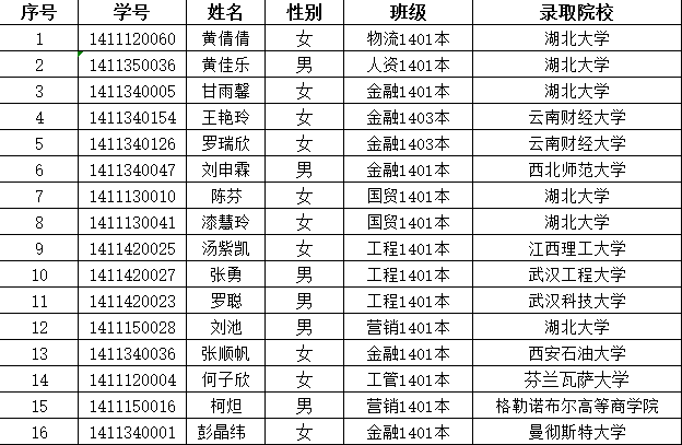 (本网讯 青年传媒中心 谢金丽)近日,我系考研喜报频频传来,2018届毕业生考研成绩喜人。截至目前,我系共有16名同学考取研究生,其中有3名同学被国外高校录取。特向全系师生报喜,并向这些同学表示由衷的祝贺!