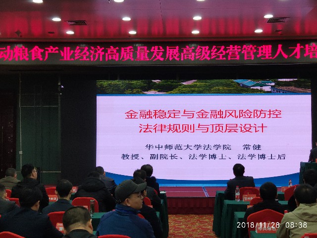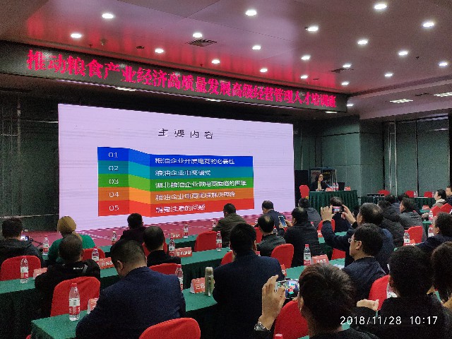 11月28日,省粮食局在2018第二十届荆楚大地湖北粮油精品展示交易会期间,在武汉国际会展中心举办推动粮食产业经济高质量发展高级经营管理人才培训。华中师范大学法学院副院长、教授常健讲授了《金融稳定与金融风险防控》,湖北大学知行学院讲师、跨境电商专业教学指导委员会委员马欢欢讲授了《粮油企业的电商之路》。省粮食局党组成员、副局长刘海涛同志主持培训活动,“中国好粮油”示范企业负责人、粮油加工龙头企业及参展企业负责人、各市州县粮食局局长、科长参加了本次培训。整个培训突出实践性、针对性,大家普遍感到,开阔了眼界、开启了思路。