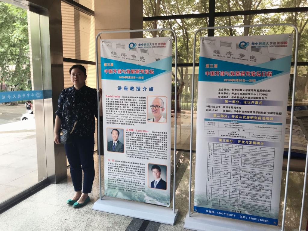 2019年5月26日数量经济学理论与应用前沿论坛及第三届中国开放与发展研究论坛在华中科技大学经济学院举行。我院金融专业张娥、汪天倩、王雅琳老师参加了数量经济学理论与应用前沿论坛的学习、研讨。王紫老师参加了第三届中国开放与发展研究论坛的学习、研讨。