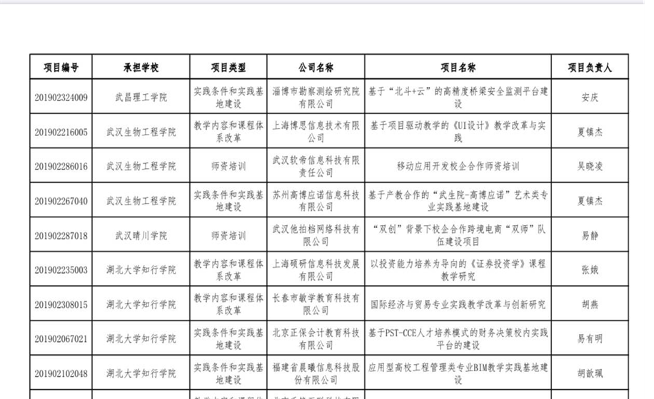 近日,从教育部高教司发布的《教育部高等教育司关于公布2019年第二批产学合作协同育人项目立项名单的通知》中获悉,湖北大学知行学院4个项目获批立项,其中经济与管理学院获批3项。项目涉及教学内容和课程体系改革、实践条件和实践基地建设等,其中教学内容与课程体系改革类在湖北大学视为省级教改类项目。