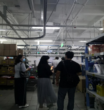 会后,学院一行在公司带领下参观了盒马鲜生的运营现场、配送仓及空中悬挂配送系统。