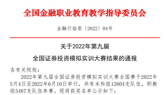 经济与管理学院参加2022第九届全国证券投资模拟实训大赛喜获多项奖项