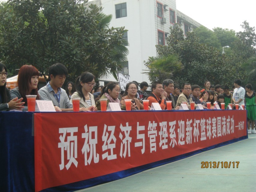 出席开幕式的学校领导、老师及学生组织分别是——舒展书记、汪小曼主任、刘锐副书记、经管系学生会指导老师秦欣欣老师以及经管系分团委学生会和各专业篮球队伍。