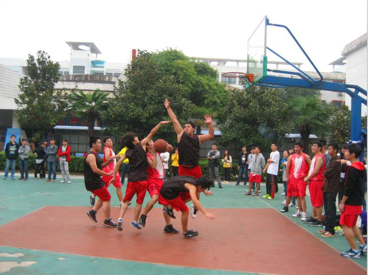 此后,每天中午12:30,战火在篮球场持续点燃。金融10级、金融11级、物流11级、国贸11级、市场营销12级、物流12级等等队伍依据一定的规则进行较量。球场上总是热闹非凡,双方的队员们总是斗志昂扬、激情澎湃,他们凭借着精湛的技艺和默契的配合,为我们上演了一场又一场惊心动魄、激动人心的视觉盛宴!