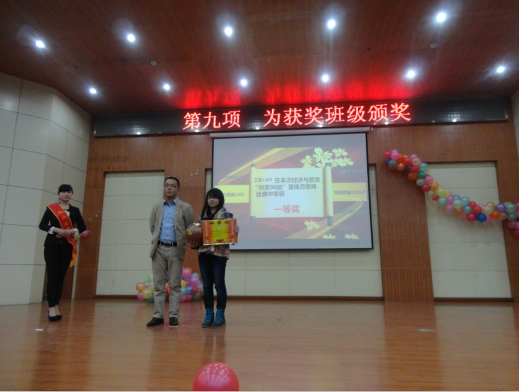 终于在2013年4月2日晚,经管系“创意90后”歌咏比赛暨雷锋月闭幕仪式在行政楼201精彩上演!到场的有经管系刘锐书记及各个专业的辅导员,以及经管系学生。这是宣传雷锋精神的舞台,更是展现经管学子风采的天堂。