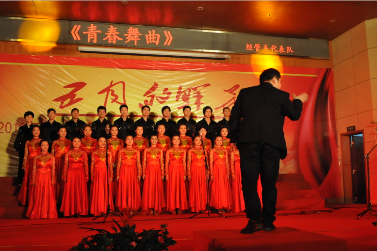 比赛开始了,各个系都井然有序表演着。同学们的表演可谓独具匠心、精彩纷呈,博得了台下一阵又一阵雷鸣般的掌声。经济与管理系带来的合唱曲目《青春舞曲》,高亢激昂完美的歌唱将比赛推到了高潮,带给我们了青春的回忆以及对未来的希望。《青春舞曲》——悦耳的歌声,悠扬的笛声,轻快的钢琴声,令现场气氛高涨,嘹亮的歌声不断地响彻整个报告厅。9场精彩的合唱演出,带给了我们精神上的愉悦,心灵的震撼,视觉上的享受!