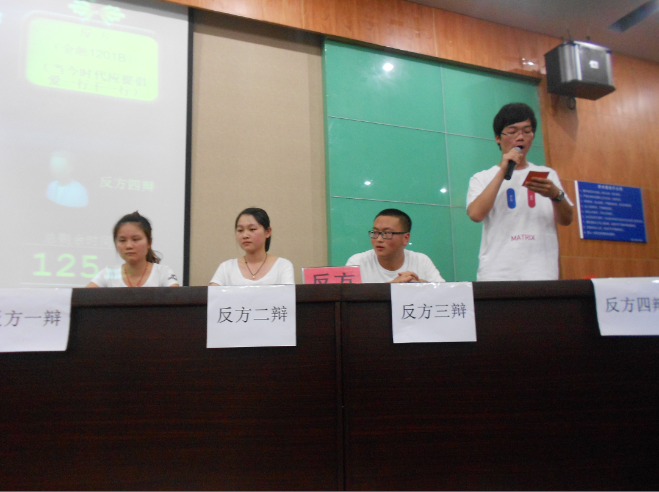 (本网讯)2013年5月15日晚七点,经济与管理系辩论赛决赛在行政楼202隆重举行,现场气氛热烈。