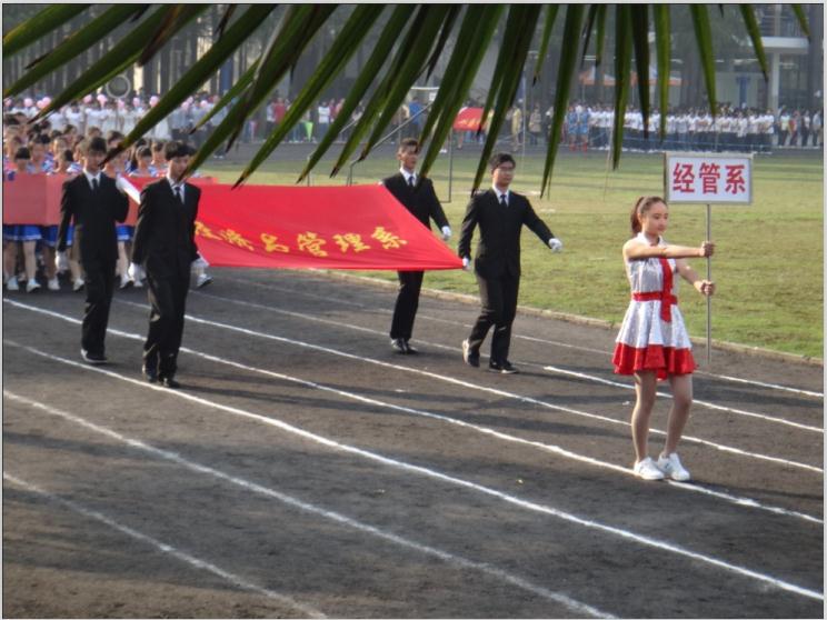活动开始后,其中经管系的方阵组合,摆出“加油,知行”的强大号召,其出彩的设计、整齐的队伍,组成一幅唯美的画面,动人心魄!彩旗飘扬,舞蹈群飞,传统京剧散发着阵阵清香,参加成员们尽情舞蹈,来表达对运动会的无限欢迎。彩虹伞摇转出他们的激情,抒情曲表达出他们的祝福,正方阵显示出他们的威严,一切是那么美好!现代又带有浓厚古典气息的脸谱,别具风韵的印度舞,健美操队劲爆的啦啦操,彩伞之下变幻莫测的图案,都精彩绝伦,让人流连忘返。所有人都期待着田径及有关项目能绽放出新的色彩。