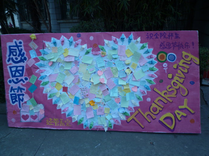 2010年11月25日由经管系青年志愿者大队主办的以“祝福在飞翔,感恩在延续”为主题的感恩节活动在湖北大学知行学院如期举行。