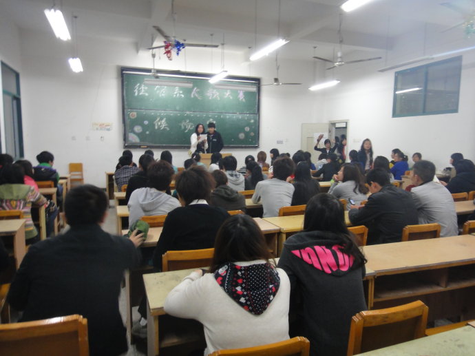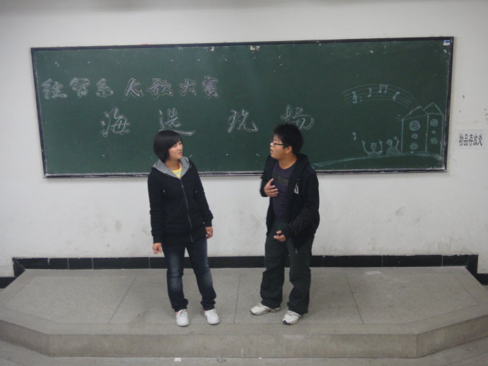 2010年11月3日晚6:30,由经管系主办的“k歌大赛”海选第一场在3栋305教室如期举行。来自经管系的145名选手参加本次海选活动。前院合唱队队长左莺及成员张杭、杜慧、杨丽萍,文艺部部长黄谢俊,活动部部长王雷出席本次活动并担任评委。各场评委依据参赛者的现场演唱情况从音调,音色,台风等方面作出详细点评并提出建议。来自国贸0803班张智成以优异的表现拿到晋级复赛的pass卡。直至晚9:30,为期两天的“k歌大赛”海选活动圆满结束。据相关负责人介绍本次活动是为了丰富我系学生的课余文化生活,并为其提供展示自我的舞台。