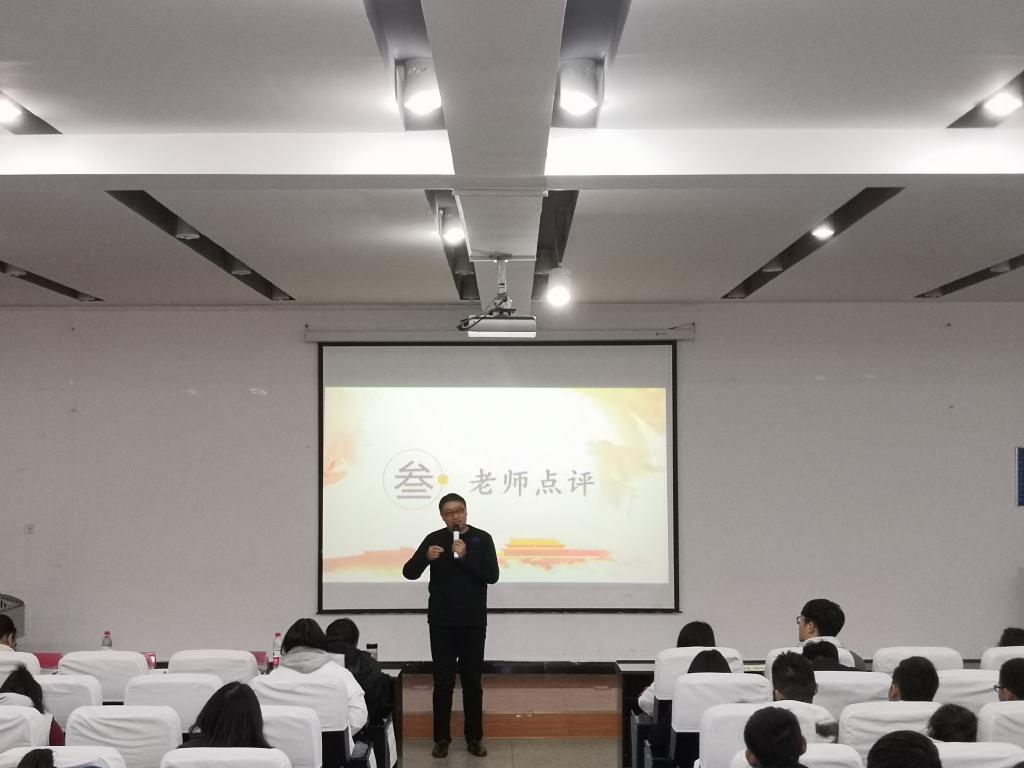 其次是各评委进行提问、点评。在名师点评的环节中,各班代表思路清晰,利用所积累的丰富经验灵活应对评委问题,展示了优秀的班级风采、优良的经管人风貌。