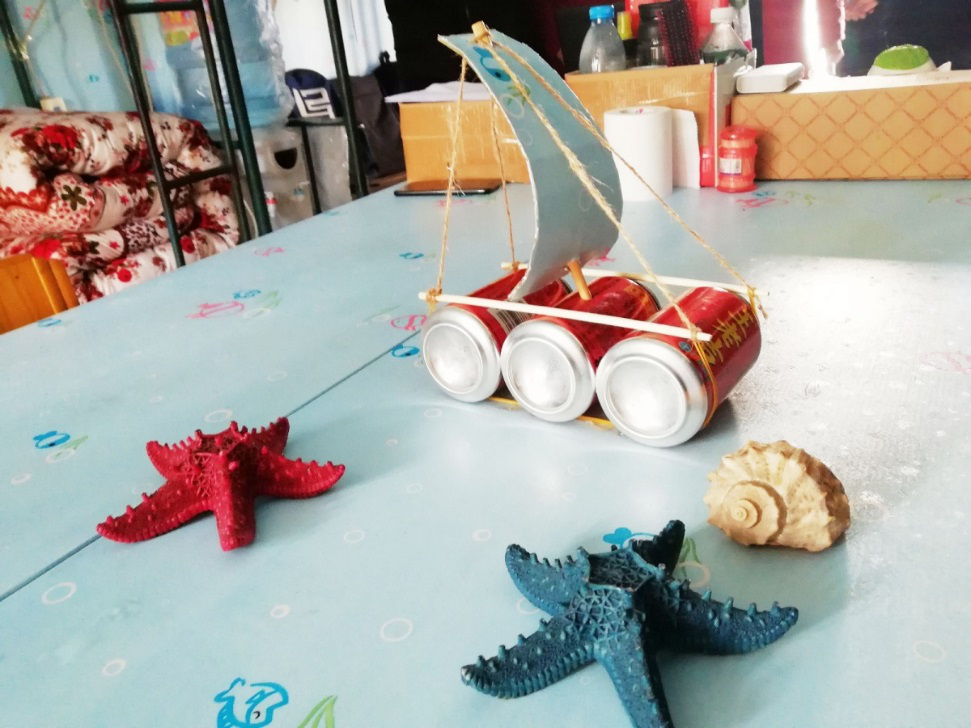 扬帆起航,逐梦青春。男生机智的把喝完的易拉罐改造成小帆船