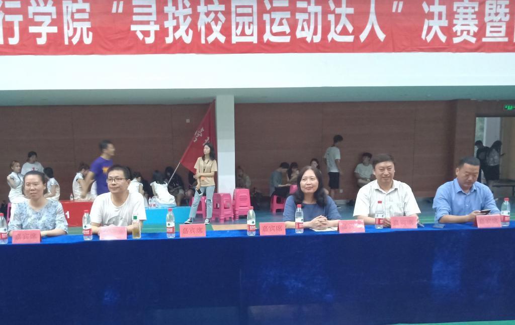 2019年6月5日,“寻找运动达人”决赛暨闭幕式在校体育馆举行。此次活动由校体委主办,由经管学院、艺术学院与机电学院承办。校思政与体育课部书记兼主任杨旭、经管学院书记兼院长刘容、机电学院副书记陈驰以及各学院辅导员代表参加活动。决赛在杨旭主任的致辞中拉开序幕。