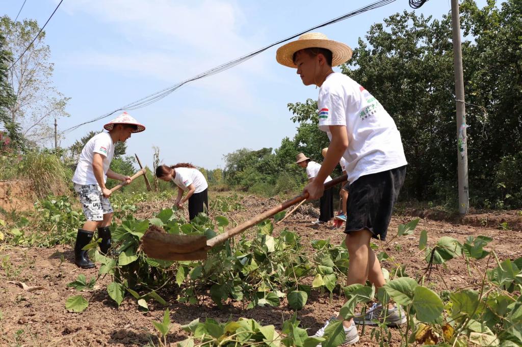 在实践中收获,在体验下成长。我们的志愿者跟着农民伯伯一起下地干农活,采摘,翻土,施肥。顶着烈日,下农田,锄土地。以前总觉得得干农活是一件不算辛苦的事情,等到自己动手,才知道多么得辛苦,下地干活半小时,我们的志愿者早已满身大汗。