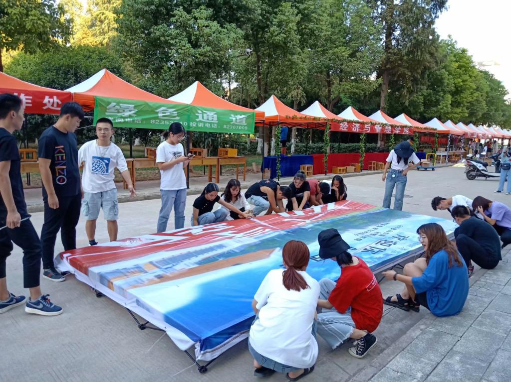 经心为你,管怀备至,在经管院分团委学生会的细心准备和各位学长学姐的精心布置下,迎新需要的各种物资已经集合完毕~经管专属迎新帐篷在图书馆后方等着你!