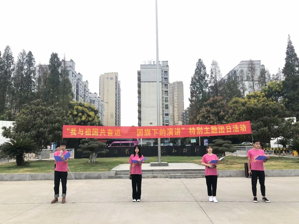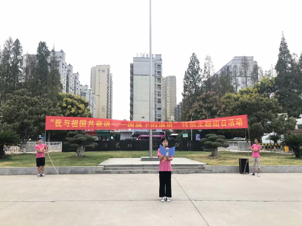 我和我的祖国,一刻也不能分割,我和我的升旗,在晨风中进行。经济与管理学院升旗仪式于今日早晨七点在知行学院校门口进行。