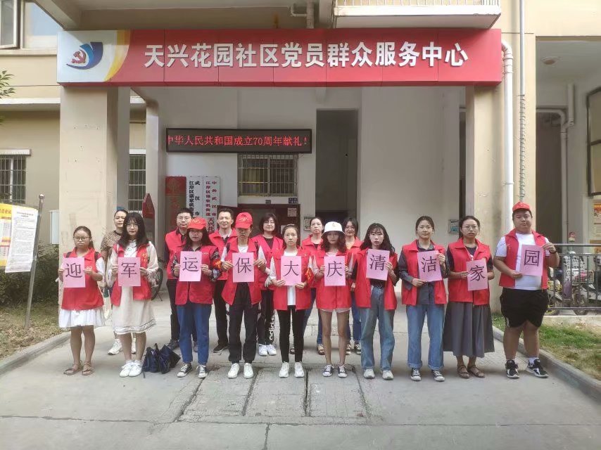 为了迎接军运会的到来,建设美好城市清洁社区,展开了清洁家园的活动,今天早上九点,我院分团委学生会青年志愿者大队带领学院部分志愿者学生来到天兴花园社区,以收拾身边的垃圾为主,发扬生态文明爱护环境的理念,为天兴花园社区的居民打扫广场,清洁草坪。
