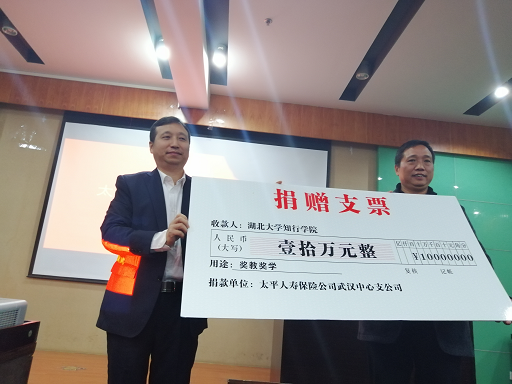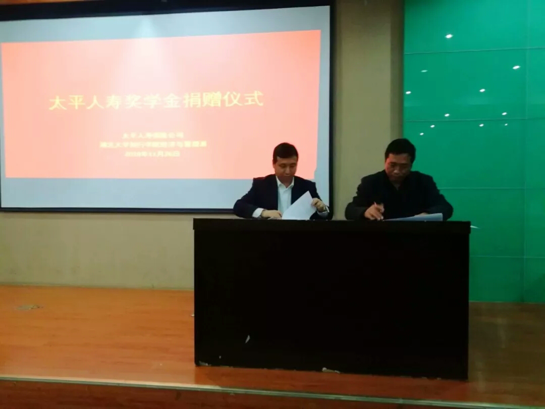 会上,舒怀强先生与副院长王文凯相继发言,就进一步促进校企双方的深层次合作,更好的实现校企共建双赢提出了意见和建议。随后,太平人寿保险公司武汉中心支公司向我系捐款十万元成立“太平人寿奖学金”,我院副院长王文凯与总经理舒怀强进行签约仪式。