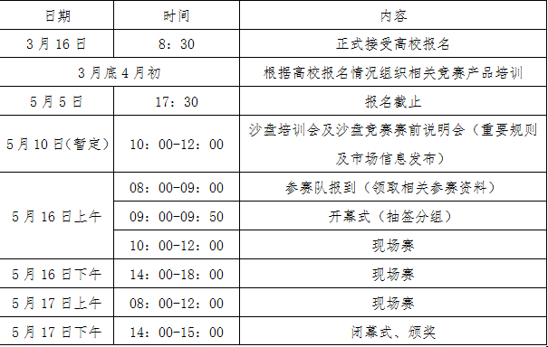 校内重点培养可根据校内报名情况,考虑学生参赛意愿和专业能力等因素,选择一组学生,在沙盘平台上进行训练,并代表所在学校参加省赛;