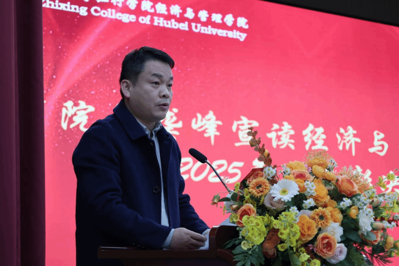 院长龚峰上台宣读《经济与管理学院2025年度先进个人及集体表彰决议》,字字铿锵有力、掷地有声。