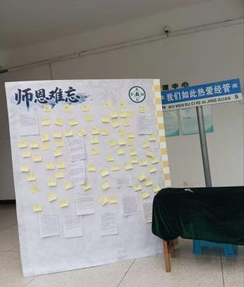 活动分为三个环节。首先,“晨光里的第一声祝福”中,学生们在清晨时分走进教室,向备课的老师送上集体祝福和手写贺卡,以朴实的话语传递感激之情。其次,“笔尖流淌的感恩心声”环节,学生们通过手抄作品记录课堂点滴,学生会精选优秀稿件,字里行间流露对师恩的敬仰。最后,“展板上的星河万里”活动,学子们在知远楼展板上贴满彩色便利贴,汇聚成一片“感恩星空”,用文字倾诉成长路上的敬佩与感谢。