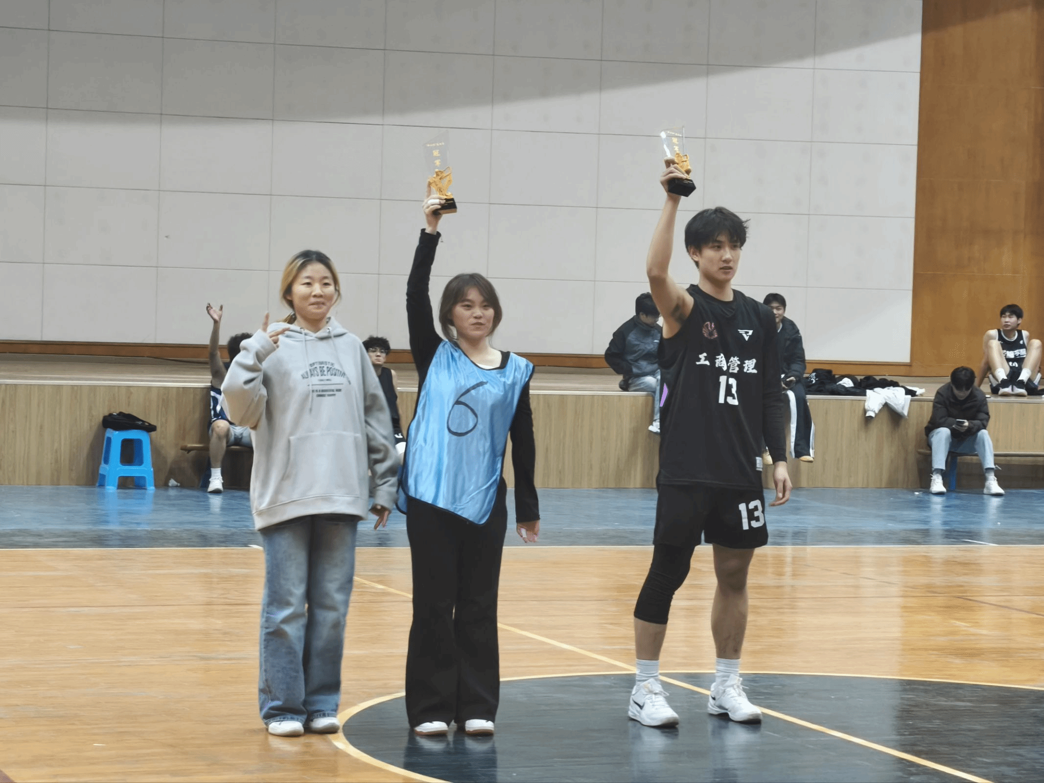 第二项是备受瞩目的颁奖环节,赛事组委会公布了最终成绩:男子组冠军由美队斩获,女子组桂冠花落我们都队。冯诚哲、严雨琳分别荣膺男子、女子个人MVP称号。裁判长陈红,辅导员胡瑞翔分别为获奖集体和个人颁发奖杯证书,现场掌声雷动。