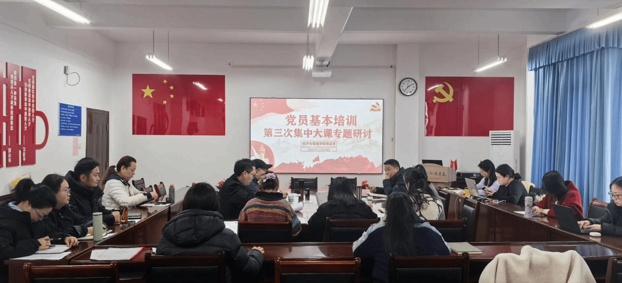 为深入学习贯彻党的创新理论,根据学校统一部署,经管学院党总支于12月24日下午,围绕谢春涛教授的《中国共产党与中华民族伟大复兴》党员基本培训第三次党课讲座内容,开展交流研讨会议。会议由学院党总支书记路琛主持,全体党员教师参会。