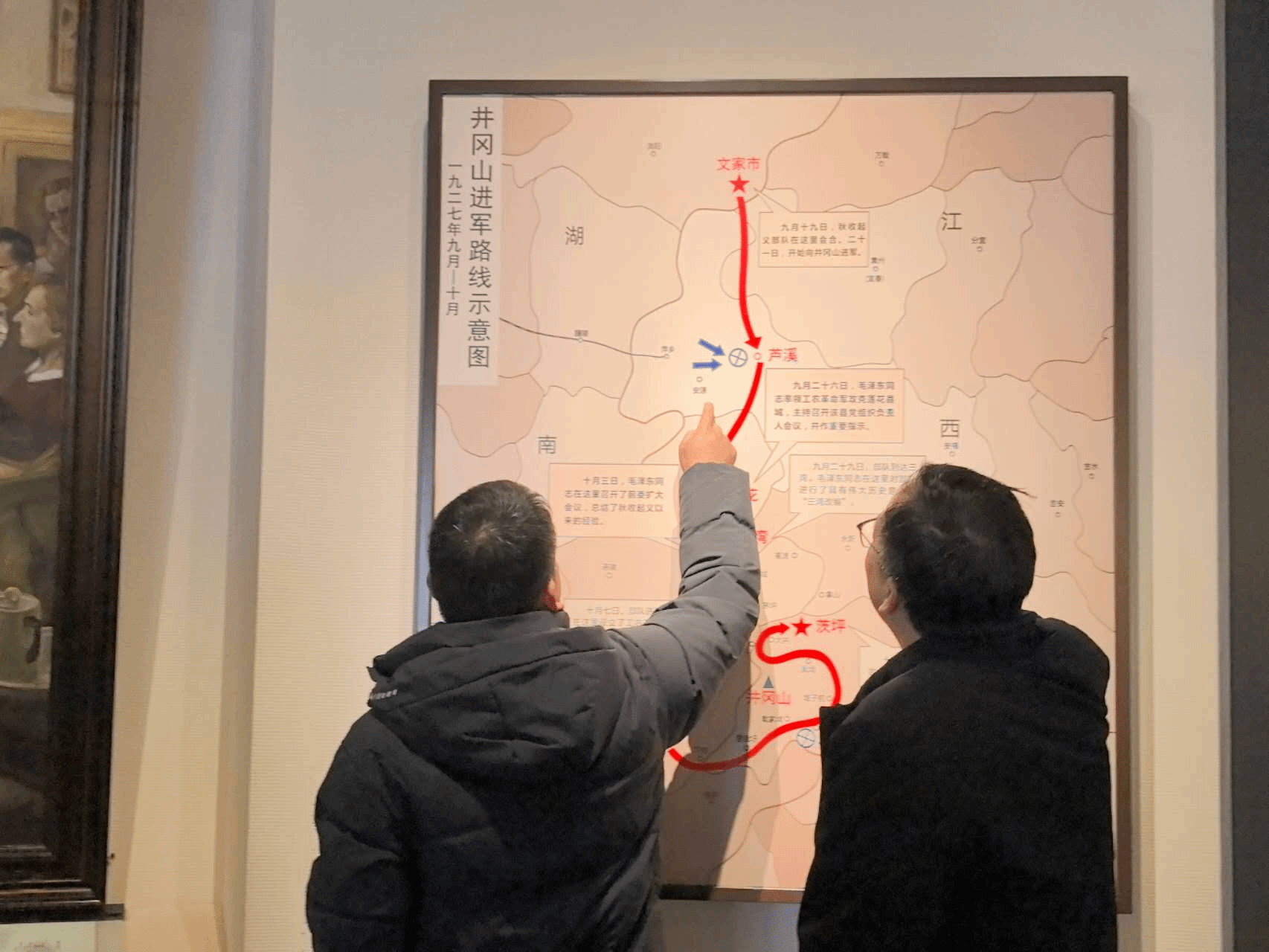 党员们不时驻足凝视,轻声交流感悟,详细询问历史细节,深切体会到革命年代的艰辛不易与伟人无私奉献的家国情怀。当听到讲解员讲述毛泽东同志因工作繁忙,在儿子毛岸龙出生时未能及时探望,而杨开慧同志毫无怨言全力支持革命工作的事迹时,不少党员眼眶湿润,被革命先辈的坚定信念与崇高风范深深打动。大家驻足凝视珍贵的历史影像和文献资料,详细了解毛泽东同志主办农民运动讲习所、筹备中华全国农民协会、出席中共五大等重要革命实践,深刻感悟他“以农村包围城市、武装夺取政权”的远见卓识和“为人民谋幸福、为民族谋复兴”的初心使命。