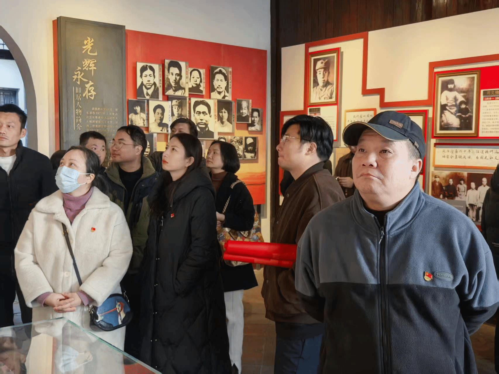 冬日的武汉毛泽东旧居庄严肃穆,青瓦灰墙间承载着厚重的革命记忆。全体党员佩戴党徽,怀着崇敬之心整齐列队,在党总支书记的带领下步入旧居。这座位于武昌都府堤41号的普通民房,是1927年上半年毛泽东在武汉从事革命活动的重要场所,见证了《湖南农民运动考察报告》的诞生,留存了中国共产党早期领导农民运动的光辉足迹。在讲解员的引导下,党员们依次参观了卧室、办公室、会客厅等复原场景,泛黄的手稿、陈旧的桌椅、简陋的油灯等实物展品,无声诉说着伟人当年为革命事业呕心沥血的峥嵘岁月。