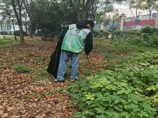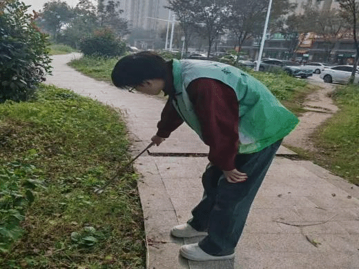 大家弯腰俯身,纷纷化身“环境守护者”:用夹子细致地夹出藏在花丛缝隙、绿植根部的细小垃圾,对体积较大的枯枝则合力搬运至指定堆放点,地面落叶也用扫帚一一清扫归集,确保“扫一处、净一处”。大家热情高涨、干劲十足,不放过任何一处卫生死角,专注认真的身影与整洁的社区环境相映成趣,成为清晨里一道靓丽的青春风景线。