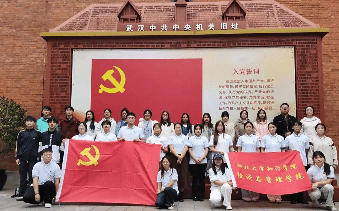 为深入学习贯彻习近平新时代中国特色社会主义思想,将红色基因的传承融入党员教育全过程,进一步强化师生党员的身份意识与使命担当,2025年10月26日中午12时,我院精心组织正式党员、预备党员、转发展对象及第43期入党积极分子共45人,开启了一场以“换届履新踏微征,红馆访忆砺党魂”为主题的红色研学之旅。本次活动以武汉中共中央机关旧址为起点,串联詹天佑雕像、防汛纪念碑两大红色地标,在回望峥嵘岁月中淬炼党性,于传承红色基因里凝聚奋进力量。
