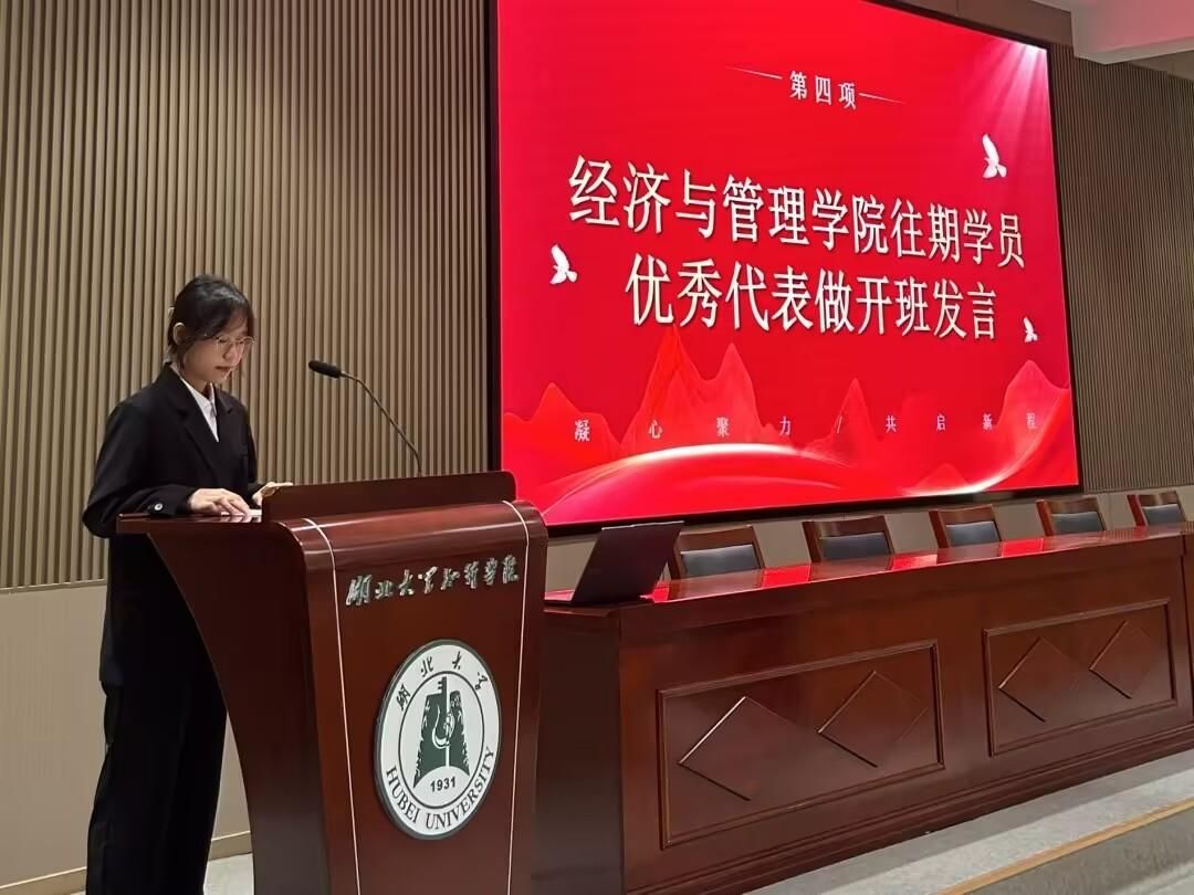 紧接着,我院往期优秀学员谢雨欣代表分享学习经验。她将党校比作“思想锤炼的熔炉”,鼓励新学员以党的创新理论凝心铸魂,以党的初心使命砥砺品格;并结合自身党校学习与社会实践经历,总结出“预、纲、复”三字学习法,并强调积极分子应“先做党的人,再进党的门”,倡导积极分子在应服务奉献中锤炼党性,把对党忠诚与使命担当融入日常奋斗的每一步。