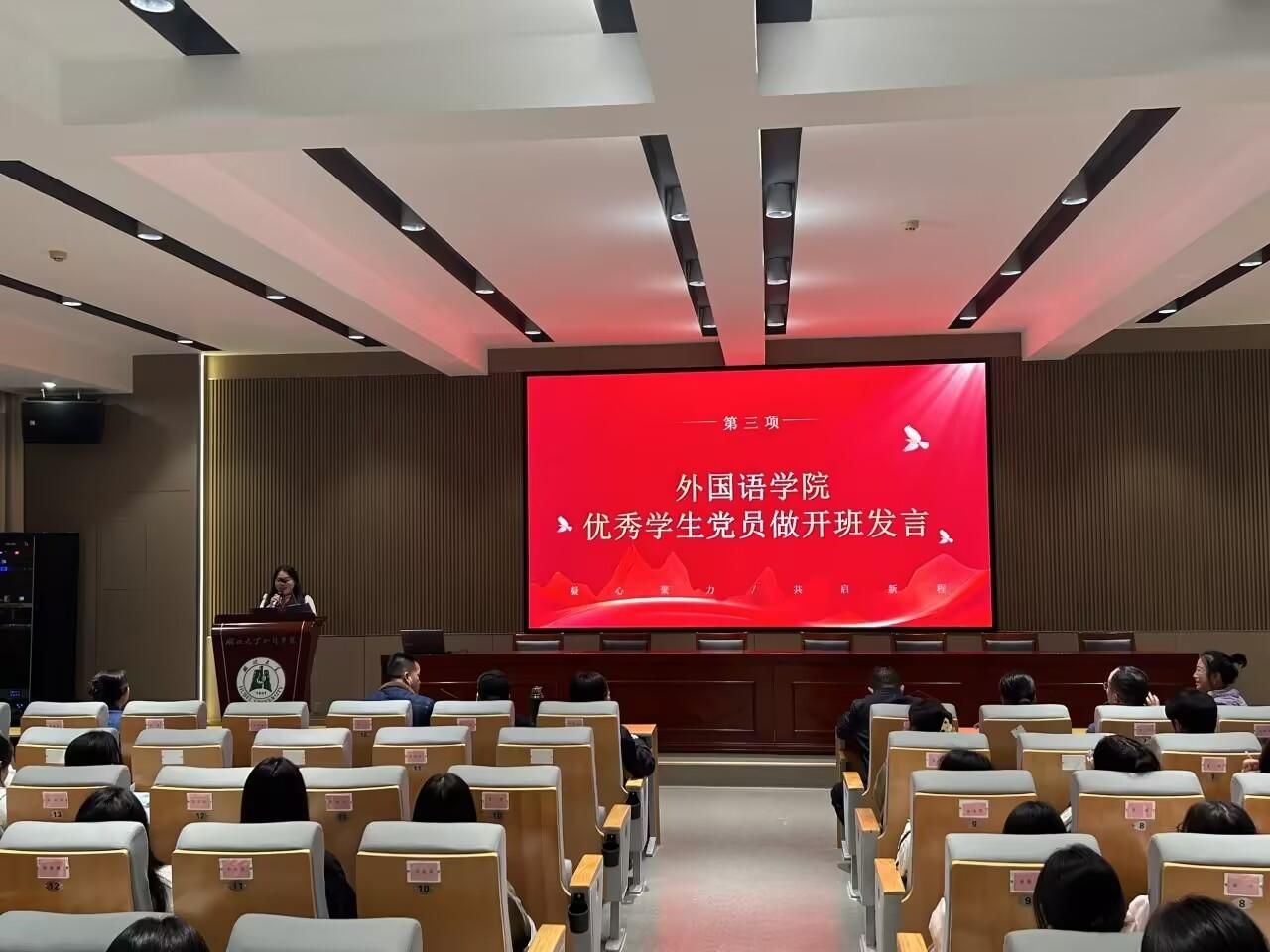 随后,外国语学院优秀学员代表张琉茜上台发言。她结合自身从团员到合格党员的成长经历,生动诠释了她的进阶之路,为新学员树立了可参照、可学习的鲜活榜样,同时着重强调,青年学员需将个人命运与祖国发展紧密相连,在日常学习与实践锻炼中持续锤炼党性修养。