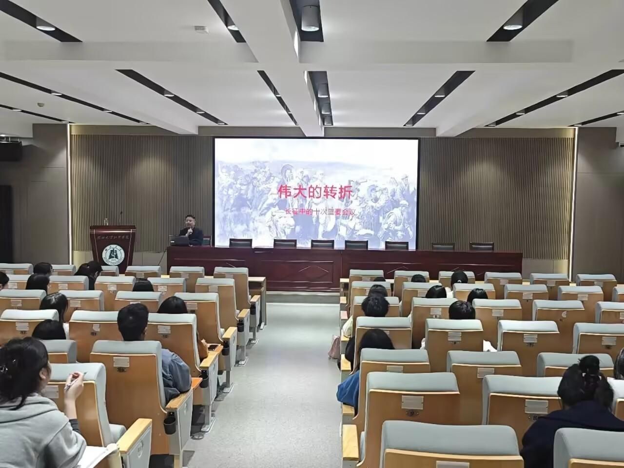授课过程中,学员们聚精会神、认真聆听,革命先辈们在极端艰难环境中展现的英勇无畏、坚定信念与团结奋斗精神,让大家深受震撼与感召。随后,王刚处长通过视频形式聚焦遵义会议,生动再现了1935年1月遵义会议前后,从苏区大撤退、湘江血战到确立毛泽东同志领导地位的历史进程,清晰展现了党在生死攸关时刻纠正“左”倾错误、挽救革命的伟大转折。遵义会议在极端危急的历史关头,成功挽救了党、挽救了红军、挽救了中国革命,是中国共产党历史上生死攸关的转折点,标志着中国共产党开始独立自主地运用马克思主义基本原理解决自身的路线、方针和政策问题。